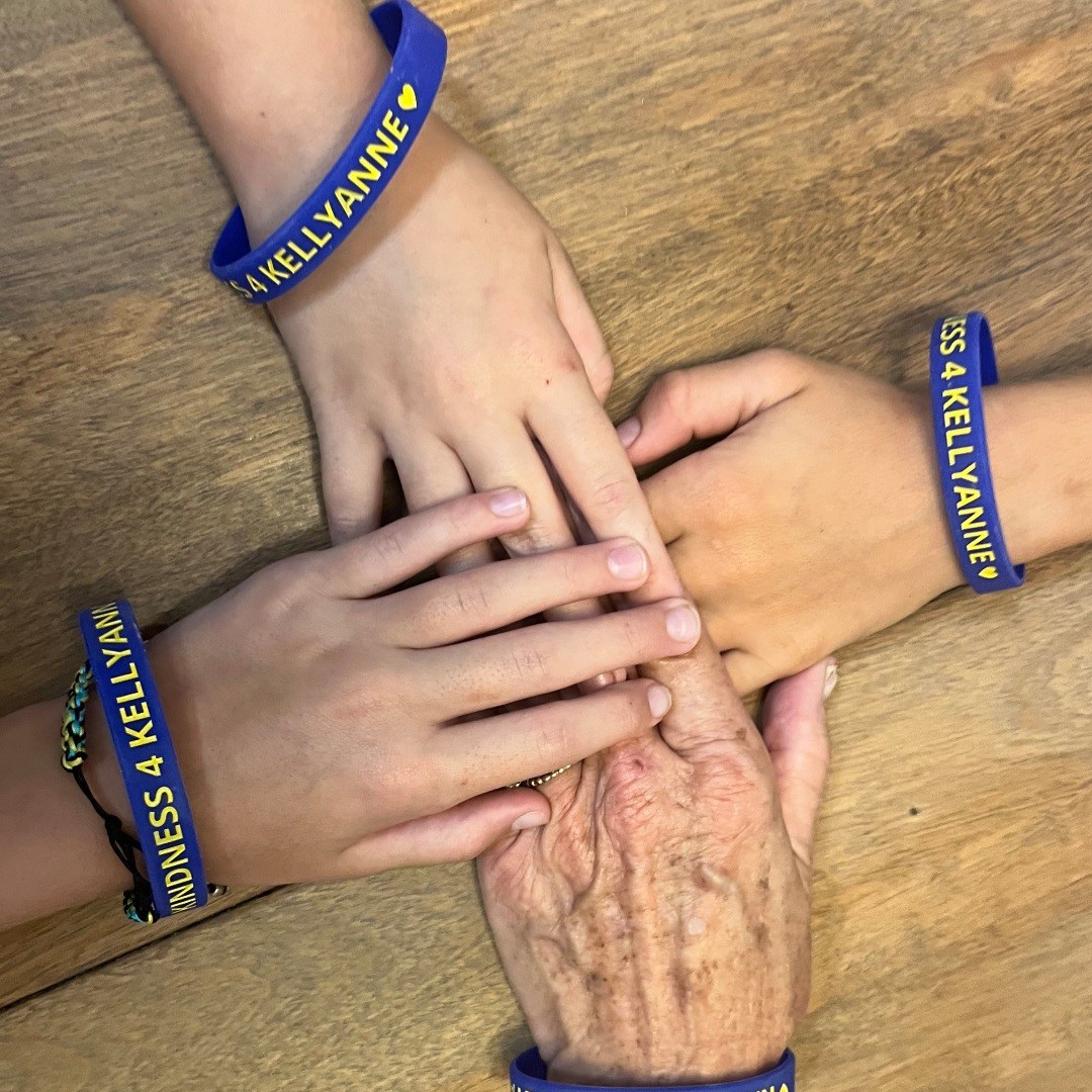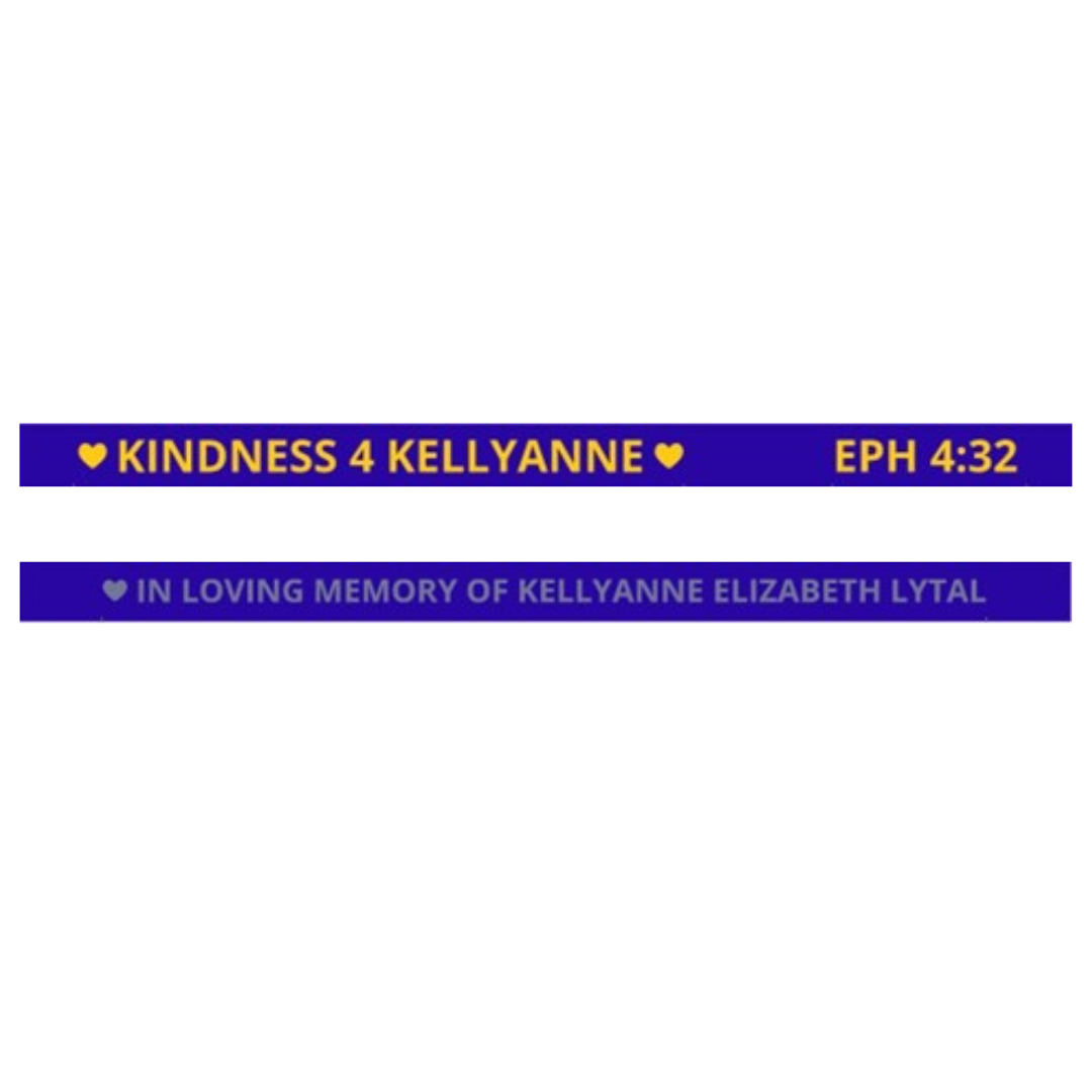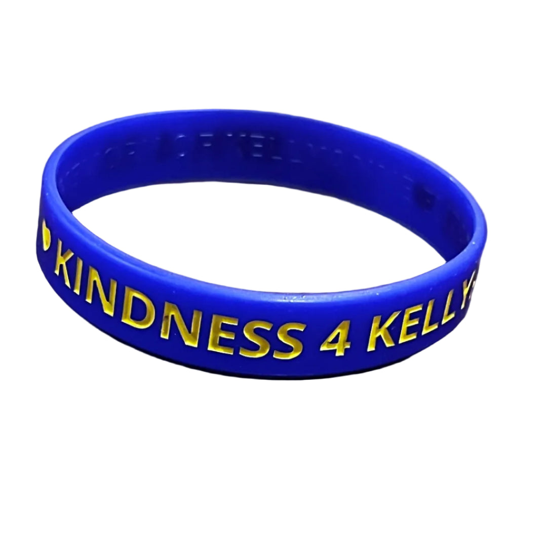 This silicone wristband featuring KINDNESS 4 KELLYANNE and EPH 4:32 — a simple, meaningful reminder to lead with kindness each day. Available in adult and youth sizes.